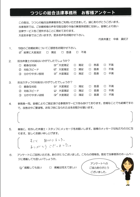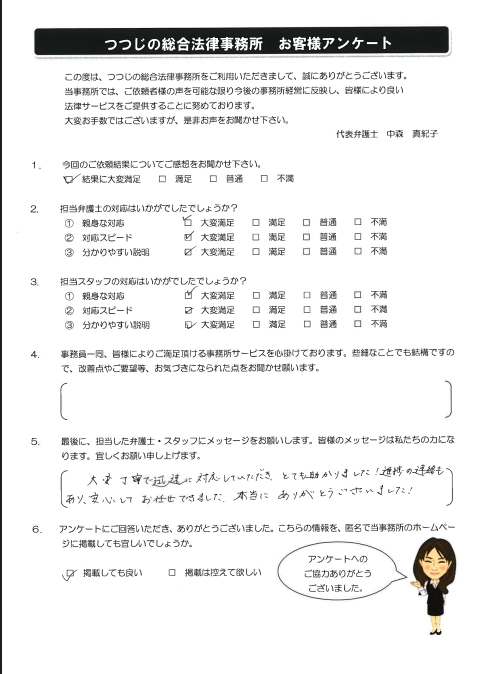 最後に、担当した弁護士・スタッフにメッセージをお願いします。皆様のメッセージは私たちの力になります。宜しくお願い申し上げます。